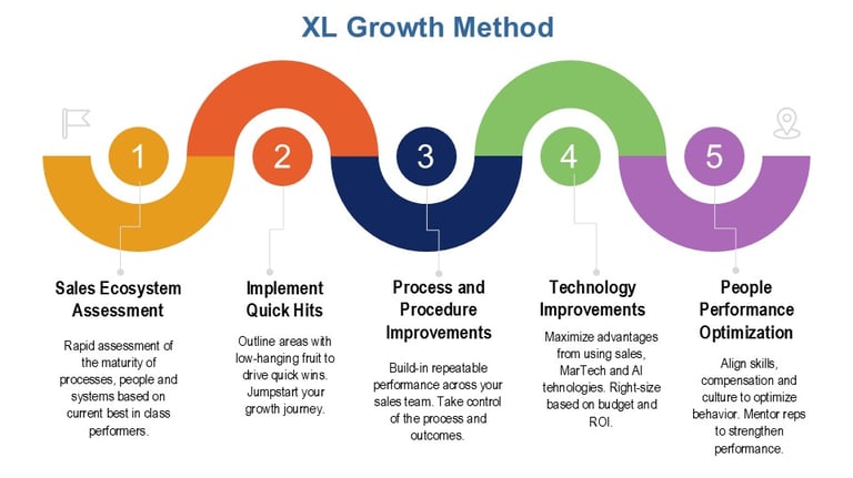 Using our proprietary XL Growth Method, our fractional VP of Sales will bring market leading practices to your strategy and day-to-day sales operations. Let XL Growth alleviate your sales challenges and drive measurable growth.